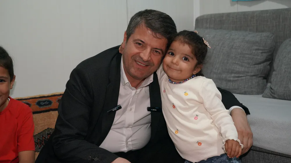 Başkan Tutdere, verdiği sözü tutarak dün Ayfer Asya'nın konteyner kentte yaşayan evine ziyarette bulundu. Kapıda kendisine koşarak sarılan Ayfer Asya’ya, “Geleceğim demiştim, geldim.” diyen Başkan Tutdere, küçük kızla sohbet etti, ev kurma oyunu oynadı.