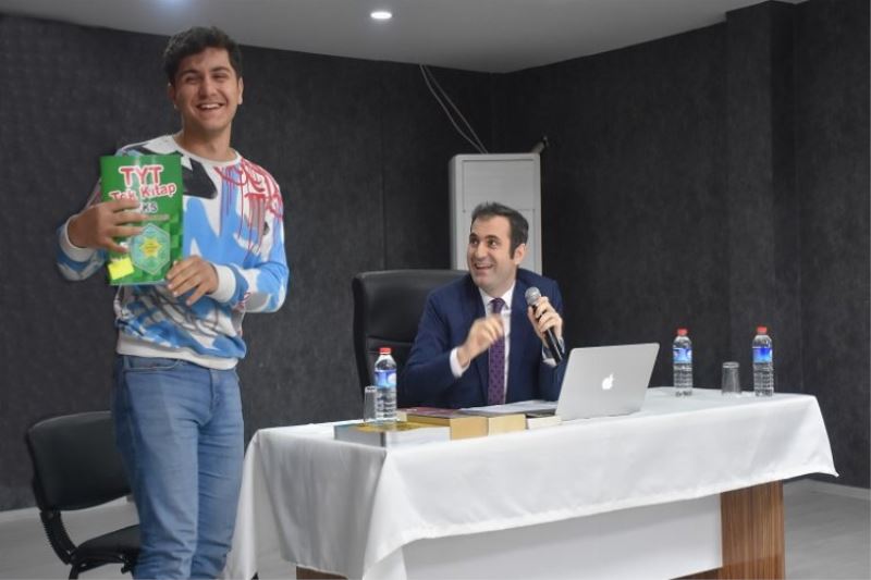 Anadolu Lisesi son sınıf öğrencileriyle bir araya gelen Kaymakam Mete, "Sizler hedeflerinizi belirleyip doğru ve planlı bir şekilde çalışırsanız başarıya ulaşırsınız" diyerek, başarılı olmanın temel şartının kendilerine inanmak olduğunu kaydetti. "Birçok zorluğa ve imkânsızlığa rağmen, inancımızı, azmimizi, çalışma şevkimizi ve disiplinimizi hiçbir zaman kaybetmeden çalışmaya devam edeceğiz" diyen Kaymakam Mete, "Biz de bu düsturla mesleğimiz için daha verimli olmak ve vatandaşlarımıza yardımcı olabilmek adına gayret ediyoruz" dedi.