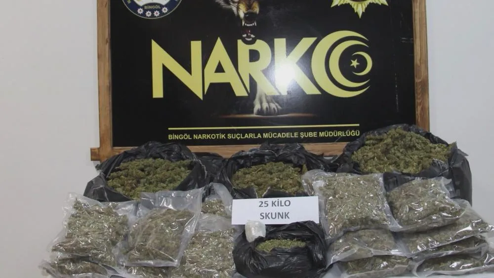 Ayrıca, Genç ilçesi yolunda meydana gelen bir kovalamaca sonucu durdurulan araçta yapılan aramada toplamda 25 kilogram uyuşturucu madde ele geçirildi. Ele geçirilen maddeler arasında 100 gram toz esrar ve 24.900 gram skunk esrar bulunmaktadır.