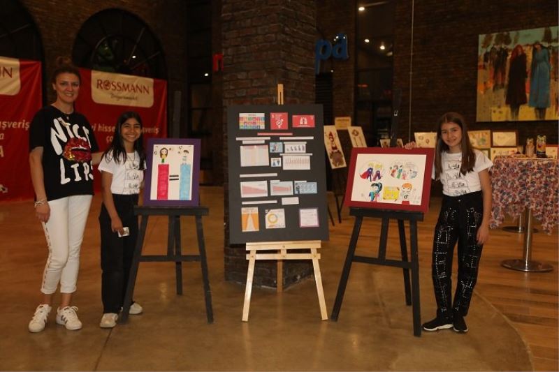 Bilkent Laboratory and International School (BLİS) öğrencileri Birce Alya Akbulut ve Mira Kaya toplumsal cinsiyet eşitliğine dikkat etmek için hazırladıkları resim sergisi ile Bilkent Center’da.