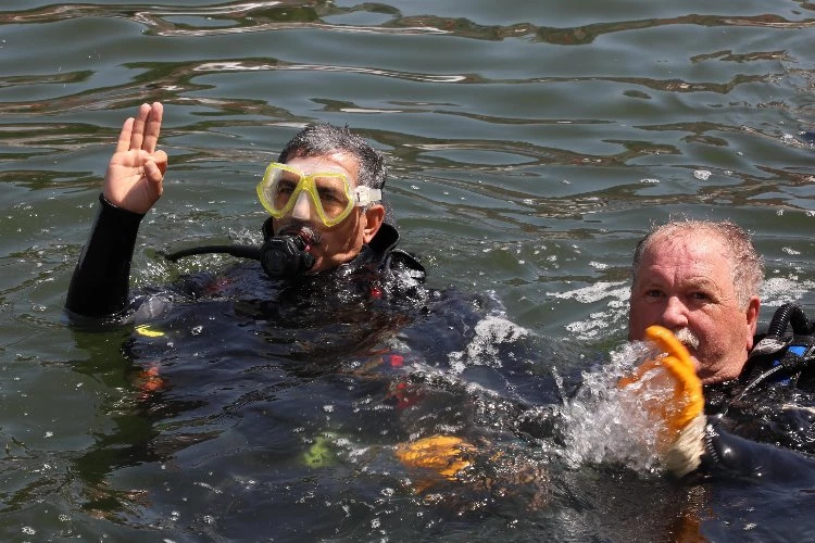 BURSA (İGFA) - Gemlik Belediye Başkanı Şükrü Deviren, profesyonel dalgıçlar eşliğinde dört metreyi aşkın dalış gerçekleştirdi.