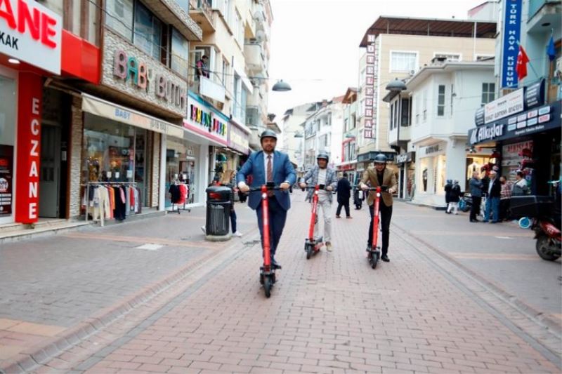 Bursa'nın İnegöl ilçesinde özel bir firma tarafından e-scooter uygulaması başlatıldı. 200 scooter ile başlayan uygulama hakkında açıklama yapan Belediye Başkan Yardımcısı Rıdvan Kocaağa, trafik kurallarına ve scooter kullanma kurallarına uyulması noktasında çağrıda bulundu.