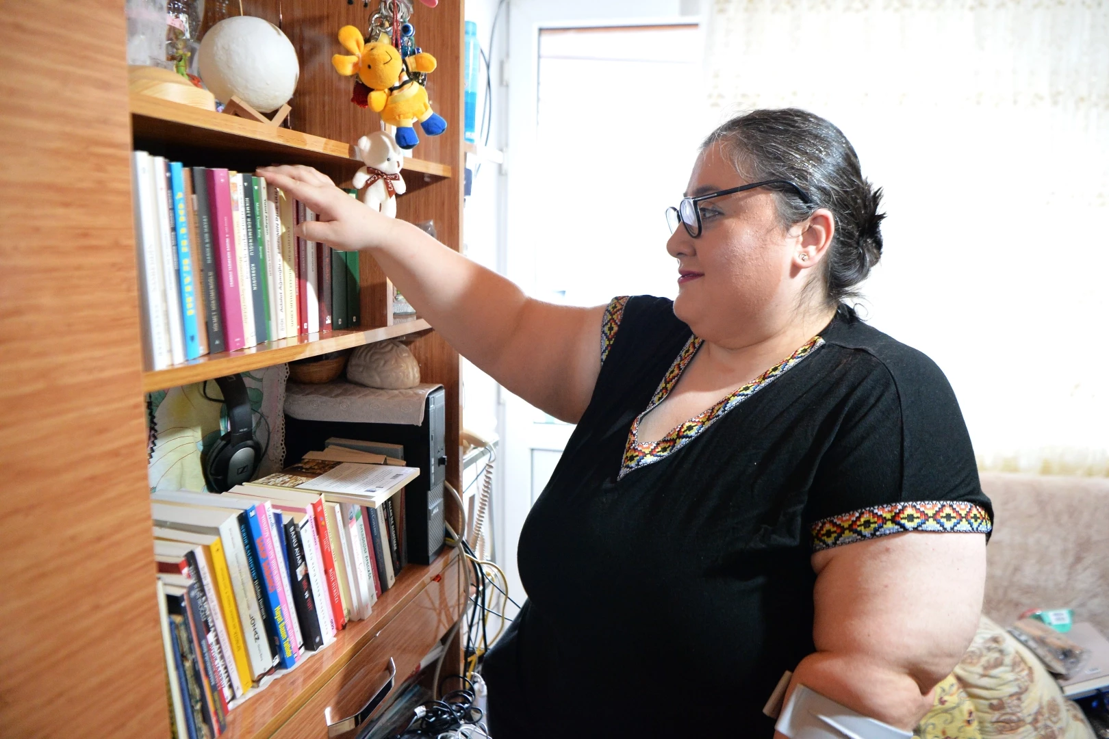BURSA (İGFA) - İstanbul’da yaşayan ve 12-13 yaşlarında okuduğu Pollyanna kitabındaki mutluluk oyunu hayat mottosu ve mücadele sebebi olan Yeşim Öztürk, (38) doğuştan geçirdiği kısmi çocuk felcinden dolayı bacağını kademe kademe kaybetti. Yaşadığı zorlu sürece rağmen hayata okuduğu kitaplarla tutunan Öztürk, hayatını ve kendini okuduğu kitaplar sayesinde kazandı.