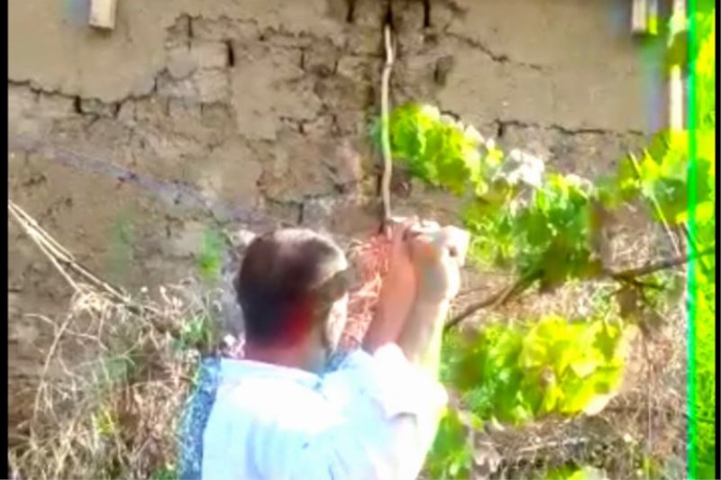Gürhan ADANA / Yenişehir Memleket (BURSA İGFA) - Bursa'ya bağlı Yenişehir ilçesinin Eğerce Köyü'nde Rahmi Erten adlı çiftçi, bahçesinde gördüğü engerek yılanını komşularının da yardımıyla köyün dışına uzaklaştırdı.