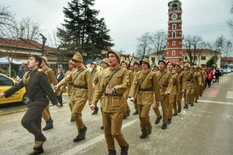 18 Mart Şehitleri Anma Günü ve Çanakkale Deniz Zaferi etkinlikleri kapsamında Yenişehir Orhaniye Mahallesinde bulunan Çanakkale Kahramanı Müstecip Onbaşı'nın kabir ziyaretleri öncesinde, Kaymakamlık binası önünden Tarihi Belediye Binasına kadar kortej yürüyüşü yaptı.