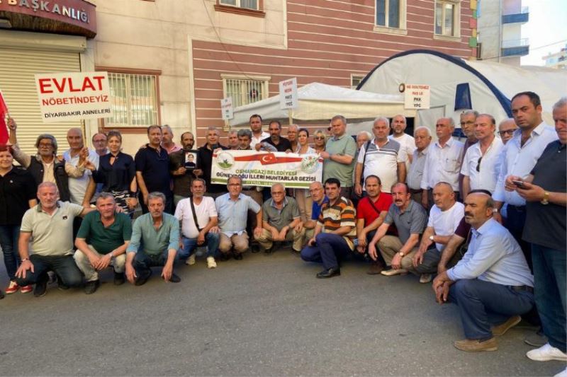 Osmangazili muhtarlara, Osmangazi Belediye Başkan Yardımcısı Halil Döner de eşlik etti. Muhtarlar, Diyarbakır gezisinde HDP il binası önünde evlat nöbeti tutan Diyarbakır annelerini ziyaret etti. Diyarbakır annelerinin acılarını yüreklerinde yaşadıklarını ifade eden muhtarlar, ellerinde çocuklarının fotoğrafıyla bekleyişini sürdüren annelerine, Osmangazi Belediye Başkanı Mustafa Dündar’ın selamını ileterek kendileri için gönderdiği hediyeleri takdim etti.