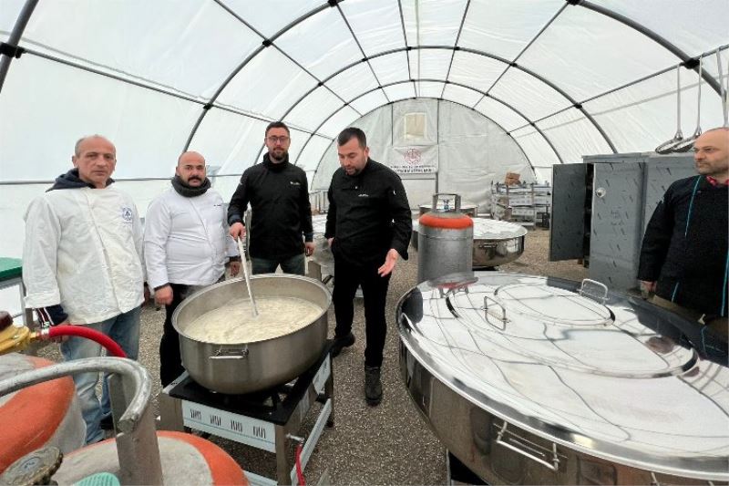 Depremden etkilenen vatandaşlara sıcak yemek desteği vermek üzere beraberinde erzak yüklü 5 tır ile birlikte yola çıkan ekip, Hatay-Kırıkhan’da sıcak yemek hizmeti vermeye başladı.