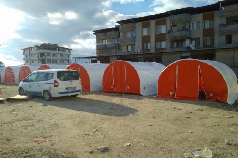 Eskişehir Büyükşehir Belediyesi afet bölgesinde büyük hasar gören altyapı çalışmalarıyla birlikte seyyar tuvalet kurulumu yaparken, barınma sorunu için de yalıtımlı çadırların kurulumunu sürdürüyor.