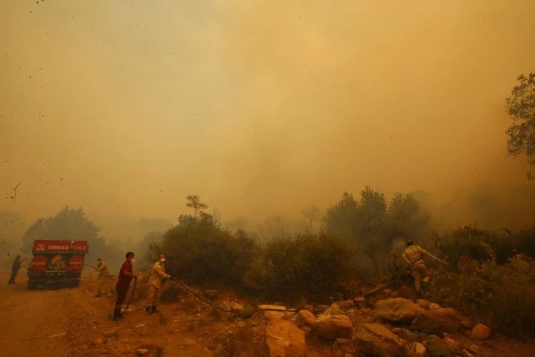 Çanakkale'de çıkan orman yangınına havadan ve karadan müdahale ediliyor.