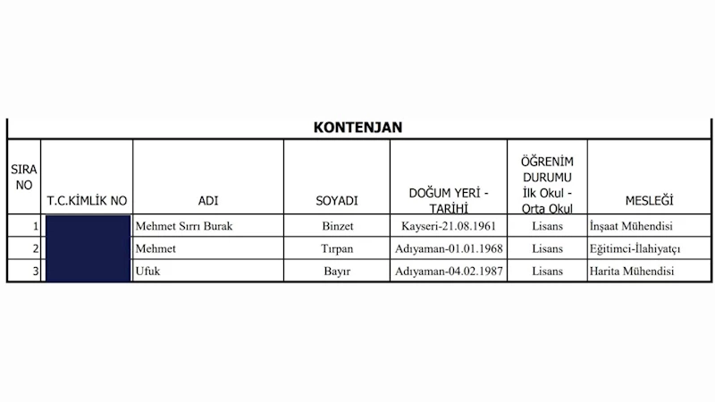 CHP Milletvekili ve Belediye Başkan adayı Abdurrahman Tutdere’nin kontenjan adayları listesinde, CHP il eski başkanı İnşaat Mühendisi Burak Binzet, deprem öncesi ve sonrasında yardım faaliyetleri ile öne çıkan Adıyaman Yetimler Derneği kurucusu İlahiyatçı Mehmet Tırpan ve TMMOB Adıyaman Koordinatörü Harita Mühendisi Ufuk Bayır yer aldı.