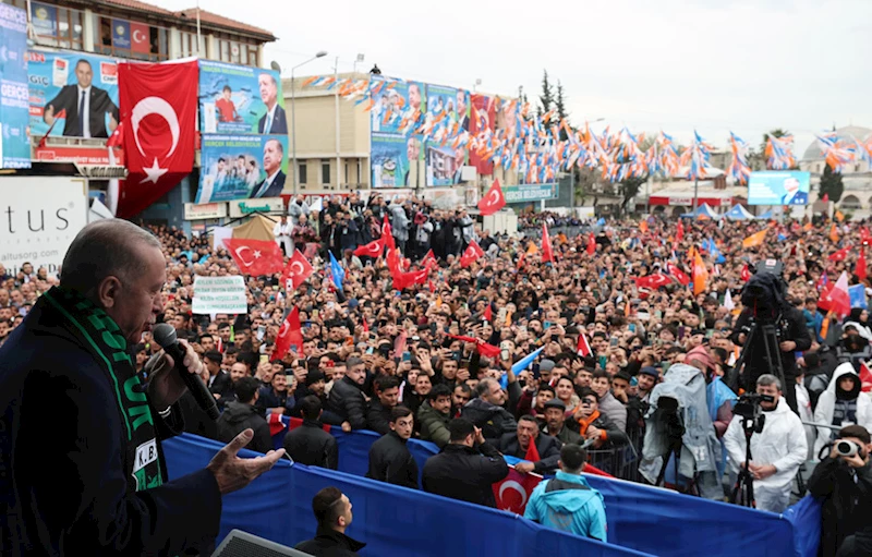 Bugünkü Kayseri mitinginden selamlar getirdiğini, muhteşem bir miting gerçekleştirdiklerini aktaran Cumhurbaşkanı Erdoğan, "Bizim siyasetteki yegâne referansımız, hizmetlerimiz ve yatırımlarımızdır. Biz icraatlarıyla, şehirlerimize kazandırdıkları eserlerle konuşan bir kadroyuz, böyle bir hükûmetiz. Meydanlarda verdiği sözleri göreve gelince unutanlardan hiçbir zaman olmadık" diye konuştu.