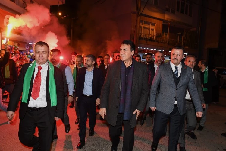 BURSA (İGFA) - Seçim çalışmaları kapsamında Osmangazi ilçesinde gezmedik mahalle ve sokak bırakmayan Osmangazi Belediye Başkanı ve Cumhur İttifakı Belediye Başkan Adayı Mustafa Dündar, yaptığı ziyaretlerde 15 yıllık başkanlık döneminde ilçeye kazandırdığı eserleri ve yeni dönemde yapacağı projeleri anlatıyor. Seçim çalışmaları kapsamında Çiftehavuzlar Mahallesi’nde bulunan Orhaneli Fadıl Köyü Kültür ve Yardımlaşma Derneğini MHP Osmangazi İlçe Başkanı Kerim Gürsel Çelebi ile birlikte ziyaret eden Başkan Dündar, burada meşalelerle karşılandı. Osmangazi Belediyesi tarafından çok sayıda hizmetin yapıldığı Çiftehavuzlar Mahallesi’nde vatandaşlar Başkan Dündar’dan duyduğu memnuniyeti dile getirdi.