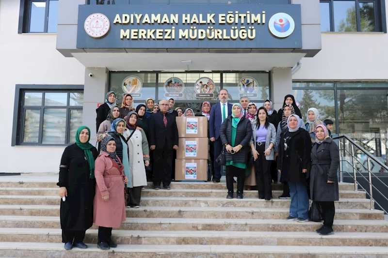 Milli Eğitim Bakanlığı Hayat Boyu Genel Müdürlüğü tarafından İsrail'in ablukası altında yaşam mücadelesi veren Filistinli kadın ve çocuklara insani yardım ulaştırılması amacıyla başlattığı "Dikiş makineleri Gazzeli çocuklar için çalışıyor projesi" kapsamında Adıyaman Halk Eğitim Merkezi Müdürlüğü tarafından üretilen 10 bin takım 50 bin parça zıbın takımı, Gazze'deki ihtiyaç sahibi bebeklere ulaştırılmak üzere Mersin Havalimanı'na dualarla gönderildi.