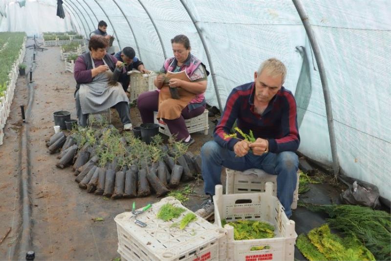 Diyarbakır Büyükşehir Belediyesi, kendi üretimi olan kara serviden maddi değeri yüksek fidanlar elde etmek amacıyla personele fidan aşılama eğitimi verdi.