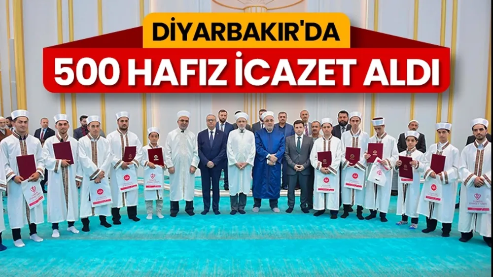 Diyarbakır il ve ilçe müftülüklerine bağlı yatılı Kur’an kurslarında hafızlık eğitimlerini tamamlayarak mezun olan 300 erkek ve 200 kız olmak üzere toplam 500 öğrenci için "Hafızlık İcazet Merasimi" düzenlendi.