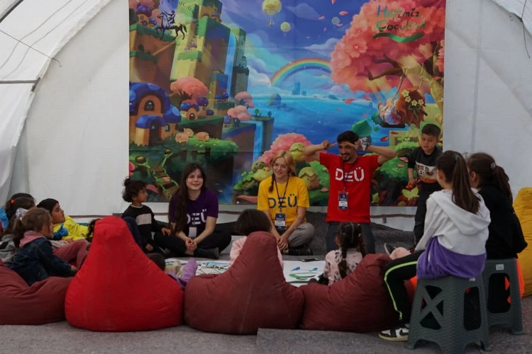İZMİR (İGFA) - Sosyal sorumluluk alanındaki faaliyetleriyle Türkiye’deki yükseköğretim kurumları arasında bu alanda en fazla proje üreten üniversitelerden birisi olan Dokuz Eylül Üniversitesi (DEÜ), Kahramanmaraş depremlerinin ilk gününden itibaren bölgede yer almış ve birçok hizmeti vatandaşlarla buluşturmuştu. Sağlık hizmetleri, eğitim, insani yardım, bilgilendirme faaliyetleri, temel ihtiyaç, gıda, barınma ve temiz içme suyu desteği ile DEÜ, bölgede örnek bir dayanışma sergilemişti. DEÜ’nün farklı birimlerinden akademisyen ve gönüllü öğrencilerinin afet bölgesindeki çalışmaları halen sürerken, bölgedeki çadır ve konteyner kentlerde depremden etkilenen çocuklara yönelik DEÜ eliyle başlatılan ‘Hepimiz Çocuktuk’ adlı önemli bir proje de yürütülüyor. Dokuz Eylül Üniversitesi Çocuk Eğitimi Uygulama ve Araştırma Merkezi (DEÇEM) koordinatörlüğünde yürütülen proje ile DEÜ, çocukların bilişsel, sosyal ve duygusal gelişimini destekleyecek eğitsel faaliyetler ile miniklerin yanında yer alıyor; eğlenceli ve öğretici aktivitelerle çocukların gelişimine katkı sunuyor, onlara moral oluyor.