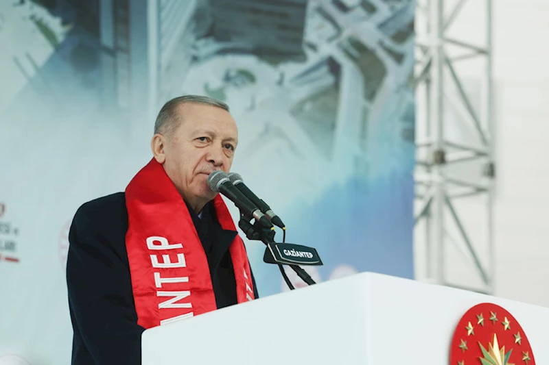 Kahramanmaraş merkezli 6 Şubat depremlerinde hayatını kaybeden 3 bin 903'ü Gaziantep'te olmak üzere 53 binin üzerindeki vatandaşı rahmetle yâd eden Cumhurbaşkanı Erdoğan, sözlerini şöyle sürdürdü: "Gaziantep'in de aralarında olduğu 11 şehrimizin 124 ilçesiyle 7 bin köy ve mahallesini vuran 14 milyon insanı etkileyen asrın afetinin üzerinden 1 yıl geçmişken yaraları sarma sözümüzü hızla yerine getiriyoruz. Dün Hatay'da, bugün Gaziantep'te, salı günü Kahramanmaraş'ta, çarşamba günü Şanlıurfa'da, perşembe günü Adıyaman'da, cuma günü Elazığ'da hak sahiplerine ilk konutları teslim ediyoruz. Deprem şehirlerimizi, altyapısıyla üstyapısıyla, şehir merkezi ve kırsalıyla tamamen ayağa kaldırana kadar durup dinlenmeyeceğiz. Rabbim ülkemizi ve milletimizi her türlü afetten kazadan beladan muhafaza eylesin."