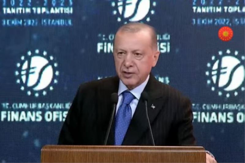 "Enflasyonun da üstesinden geleceğiz, Türkiye yüzyılını hep birlikte inşa edeceğiz" diyen Cumhurbaşkanı Erdoğan, "Küresel ekonomik kriz sürekli yeni sorunlara da yol açarak dünyayı kasıp kavurmayı sürdürüyor. Yaşanan sorunların en çok etkilediği alanların başında ise finans kesimi geliyor. Esasen finans sisteminin bunun ötesinde sıkıntıları, çarpıklıkları, çıkmazları da vardır. Daha açık bir ifade ile temel görevi tasarrufları doğru yatırımlara yönlendirerek ekonomik büyümenin lokomotifi olması gereken finansal sistem artık bu görevini yerine getiremiyor. Geldiğimiz noktada finans sisteminin üretimi ve ticareti beslediği bir ekonomik düzenin yerini adeta tüm diğer sektörlerin finans sektörünü beslediği sağlıksız ve sürdürülemez bir yapı almıştır" diye konuştu.