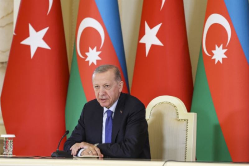 "Türkiye ve Azerbaycan olarak Doğu ile Batı arasında stratejik bir konuma sahibiz. Kardeşliğimize yaraşır şekilde ticaretten enerjiye, savunma sanayinden ulaştırmaya her alanda iş birliğimiz daha da derinleşecektir. Azerbaycan ile Ermenistan arasında barış anlaşmasının imzalanmasıyla bölgemiz çok daha müreffeh şartlara kavuşacak. İlham kardeşimle tam bir koordinasyon ve eş güdüm halinde bu diyalog sürecini yürütüyoruz. İnşallah yakın zamanda bu temasların müspet neticelerini göreceğimize de inanıyorum. Bu vesileyle bizlere 'iki devlet tek millet' şiarını miras bırakan Azerbaycan'ın Umummillî Lideri Haydar Aliyev'i doğumunun 100'üncü yılında rahmet ve minnetle yâd ediyorum. Muzaffer Ali Başkumandan, Cumhurbaşkanı İlham Aliyev kardeşim ile el ele, gönül gönüle vererek münasebetlerimizi her alanda geliştirmeyi sürdüreceğiz."