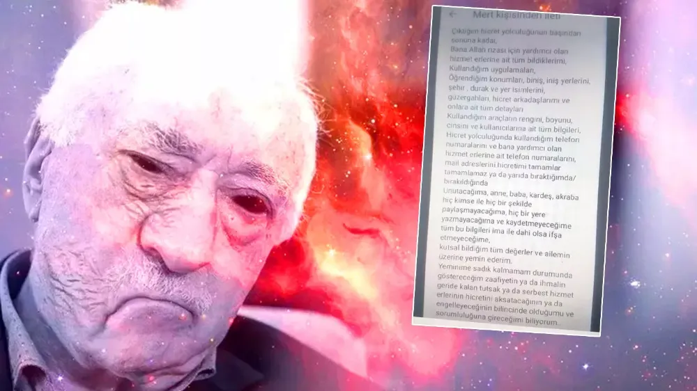 Sabah’ta yer alan habere göre, bu doküman ve yöntemlerin başka kişilerle paylaşılmaması için hazırlanan bir "yemin metni" de bulundu. FETÖ üyesi ifadesinde; Mert adlı kişinin Signal üzerinden 'yemin metni'ni göndererek aradığını ve metnin tamamını telefonda sesli okumasını istediğini anlattı.