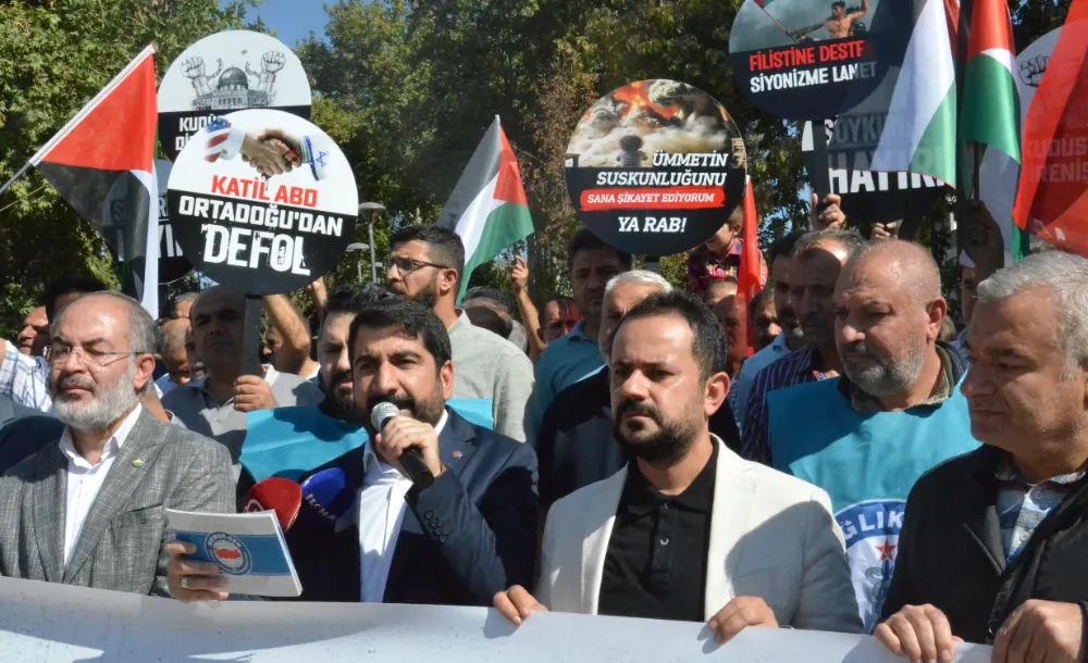Susanların kıyameti zorladığı zamandayız. Evet, bugün Filistin’de mazlumların kanı üzerine kurulmuş bir rejim var. O şebekeye kimileri devlet diyor. Hayır, İsrail bir devlet değildir. İsrail, emperyalizm tarafından kurulmuş ve desteklenen bir terör örgütüdür. İsrail, bütün dünyaya kötülük yayan, soykırımcı bir organizasyondur. Bu rejime karşı direnen bir avuç insan, bugün, bütün dünyanın onurunu tutmaya çalışan o halk katlediliyor. İnsanlık nerede? Onur nerede?” şeklinde konuştu.