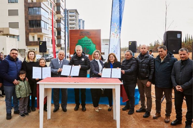 Fatma Şahin, Davut Gül, Mehmet Özhelvacı ve ailesi tarafından protokol imzalanmasının ardından fidan dikimi gerçekleşti.