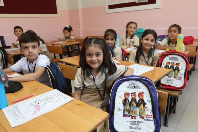 Gaziantep Büyükşehir Belediyesi Başkanı Fatma Şahin’in Gaziantep’te ilkokul 1’inci sınıfa başlayacak 75 bin öğrenciye hediyesi olan çanta ve kırtasiye malzemeleri, minikleri sıralarında karşıladı.