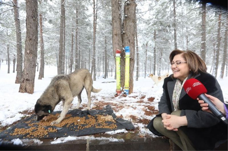 Gaziantep Büyükşehir Belediye Başkanı Fatma Şahin gece boyu sahada devam eden kar temizleme çalışmalarının ardından sabah saatlerinde de Erikçe Ormanı’nda yer alan sokak hayvanları besleme noktalarını ziyaret etti.
