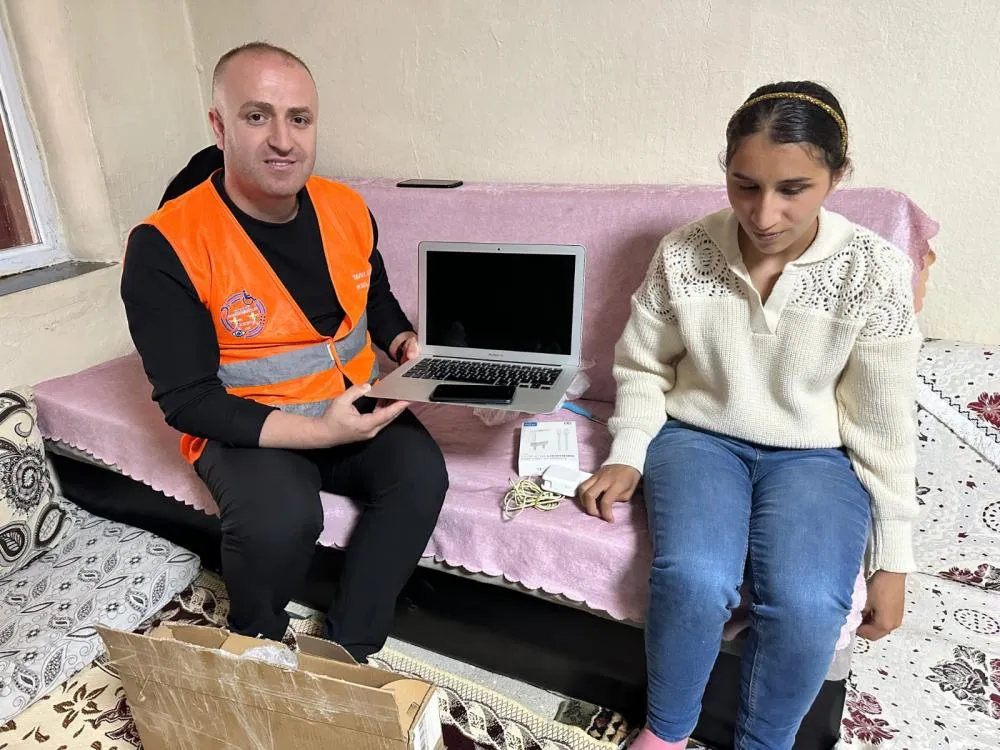 Coğrafya tanımaksızın tüm engelleri aşmak için mücadele ettiklerini ifade eden Aydoğdu, "Hakkari'nin Yüksekova ilçesi Bağdaş köyü Ericek Mezrasında yaşayan özel gereksinimli Zeynep kardeşimizin okula rahat gidip gelmesi ve derslerine engelsiz bir şekilde çalışabilmesi için bilgisayar ve telefon ihtiyacı vardı. Bizlere ulaşan maddi durumu iyi olmayan bu kardeşimiz için hayırseverlerden gelen yardımlarla bir adet dizüstü bilgisayar ve telefon alıp kendisine ulaştırdık. Dernek olarak amacımız, coğrafya tanımaksızın tüm özel gereksinimli kardeşlerimize ulaşmak. Onları topluma kazandırmak için çalışıyoruz. Bize destek veren herkese teşekkür ediyorum," şeklinde konuştu.