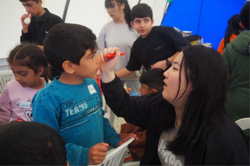 İZMİR (İGFA) - Güzelbahçe Belediyesi’nin Malatya Yeşilyurt ilçesi Aşağıbağlar Mahallesi’nde kurmuş olduğu konteyner kentte yaşayan çocuklara Özel Korean School International okulundan Güney Koreli öğrenciler, tatil dönemlerinde depremzede çocuklara destek olmak üzere Malatya’ya geldi.