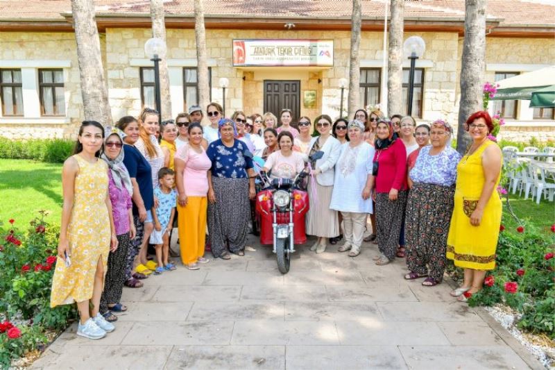 MERSİN (İGFA) - Kültürel, sosyal ve daha birçok farklı konuda etkinliğe ev sahipliği yapan Gazi Çiftliği, üretici kadınlara da gelir kapısı oluyor. Bu kadınlardan birisi olan 3 çocuk annesi Ayşe Gug, daha önce yapılan çalışmalar hakkında bilgi edinmek için gelen GİŞKAD’ın kendisine hediye ettiği 3 tekerlekli motosiklete kavuştu.