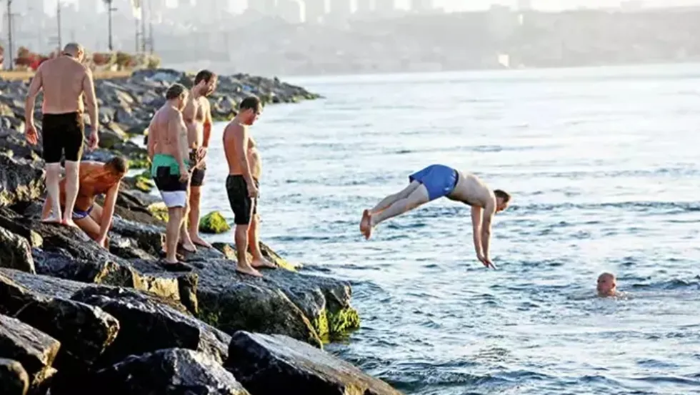 Vapur ve Marmarayı kullanmadan her sabah bogazın serin ve derin sularına atlayan gencinden yaşlısına Sarayburnu müdavimleri yüzerek iş yerlerine gidiyorlar.