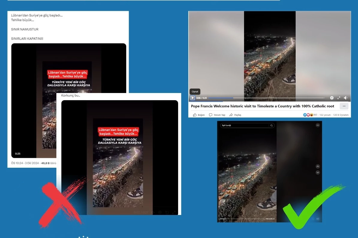 Dezenformasyonla Mücadele Merkezi tarafından yapılan paylaşımda, sosyal medyada paylaşılan görüntülerin, herhangi bir göç olayı ile ilgisi bulunmadığının altı çizilirken, "Bahse konu görüntülerin, Vatikan Devlet Başkanı Papa Franciscus’un, 8-10 Eylül'de Güneydoğu Asya turu kapsamında Doğu Timor’a gerçekleştirdiği ziyaret sırasında kaydedildiği tespit edilmiştir. Kamuoyunu manipüle etmeye yönelik iddialara itibar etmeyiniz" ifadeleri yer aldı.