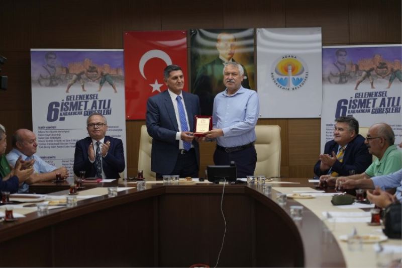 Türk Güreş Vakfı Adana Şube Başkanı Mustafa Dönmez de minder güreşlerine en yakın güreşin karakucak güreşleri olduğunu belirterek, karakucak güreşlerinin Türk güreş sporu için önem arz ettiğini açıkladı. Türk Güreş Vakfı Adana Şube Başkanı Mustafa Dönmez, Adana Büyükşehir Belediye Başkanı Zeydan Karalar’a, ata sporu güreşe katkılarından dolayı plaket verdi. Toplantıya Gençlik Spor İl Müdürlüğü Sportif Organizasyonlar Şube Müdürü Caner Taymış, Çukurova Gazeteciler Cemiyeti Başkanı Cafer Esendemir, Türkiye Spor Yazarları Derneği Adana Şube Başkanı Kerim Hoşfikirer ve Büyükşehir bürokratları da katıldı…
