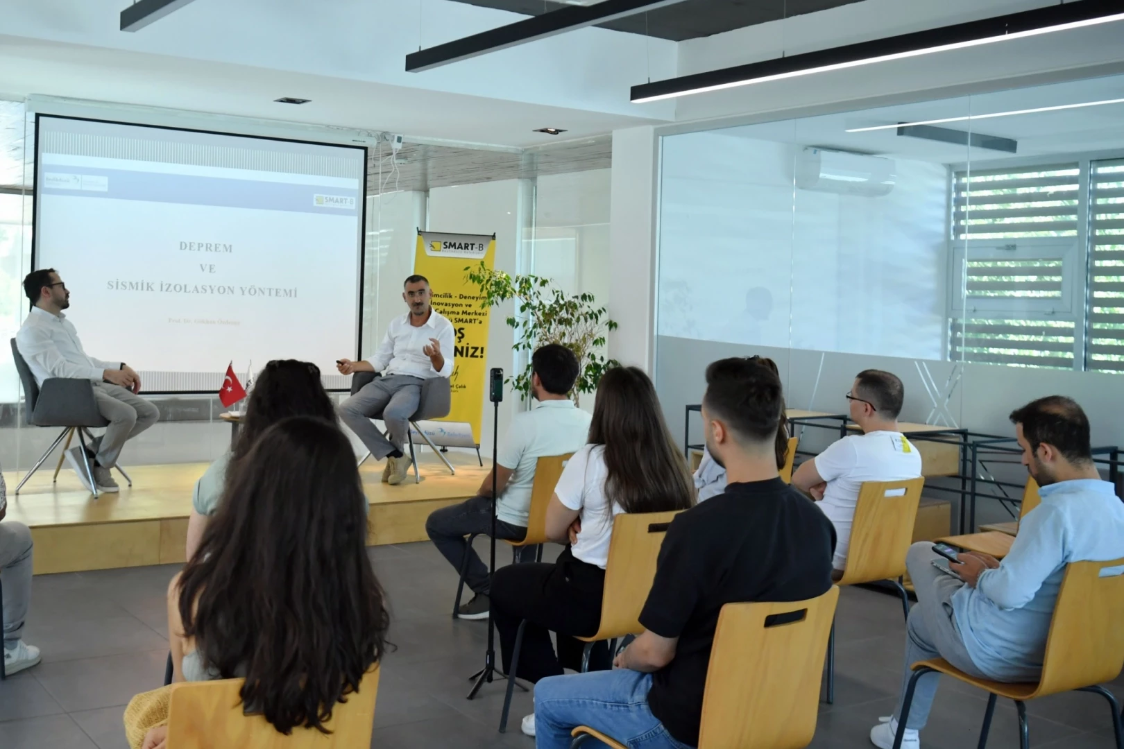 Beylikdüzü Belediyesi tarafından organize edilen Smart - Talks programları kapsamında, 17 Ağustos Marmara Depremi’nin yıl dönümünde Beylikdüzü Smart –B Gençlik Merkezi’nde , “Deprem ve Sismik İzolasyon Yöntemi” başlıklı bir söyleşi gerçekleştirildi.