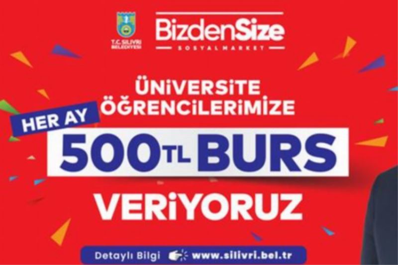 Devlet üniversitelerinin örgün eğitim programlarında okuyan ya da özel üniversitelerde yüzde 100 burslu okuyan lisans ve ön lisans öğrencilerine, BizdenSize Sosyal Market aracılığıyla aylık 500 TL burs vermeye başlıyor. Ailesi Silivri’de ikamet eden ve not ortalaması 3,0 ve üzeri olan öğrenciler, gerekli olan başvuru evraklarıyla BizdenSize Sosyal Market’e müracaat ederek ocak ayından itibaren verilmeye başlanacak destekten faydalanabilecekler.