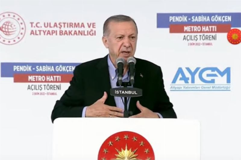 İstanbul'daki raylı sistem ağının yarısının Ulaştırma ve Altyapı Bakanlığı tarafından İstanbul'a kazandırıldığına dikkati çeken Cumhurbaşkanı Erdoğan,  "Birileri bizim yaptıklarımızı sahiplenmek istiyor" diyerek, "Artık Sabiha Gökçen'e Pendik'ten 10 dakikada, Kartal'dan 12 dakikada, Kadıköy'den 50 dakikada ulaşmak mümkün olacak" dedi.