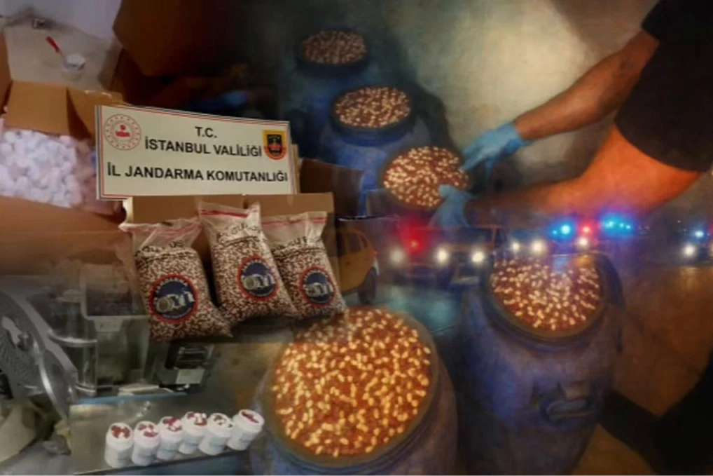İstanbul İl Jandarma Komutanlığı’nın istihbari çalışmalarıyla düzenlenen operasyonda, 7 milyon 896 bin adet uyuşturucu hap ve 63 kilogram ham madde (yaklaşık 1 milyon 280 bin hap üretilebilecek kapasitede) ele geçirildi.