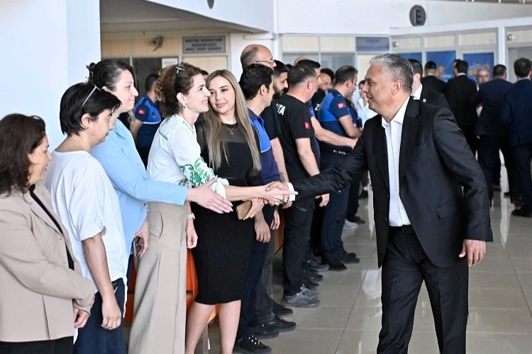 ANTALYA (İGFA) - Muratpaşa Belediye Başkanı Ümit Uysal, Ramazan Bayramı öncesi son iş gününde belediye çalışanlarıyla bayramlaştı. Başkan Uysal ve belediye meclis üyeleri ilk olarak Yeşilova Mahallesi’nde bulunan Fen İşleri Müdürlüğü’nde Park ve Bahçeler ve Temizlik İşleri müdürlükleri çalışanlarıyla bir araya geldi.