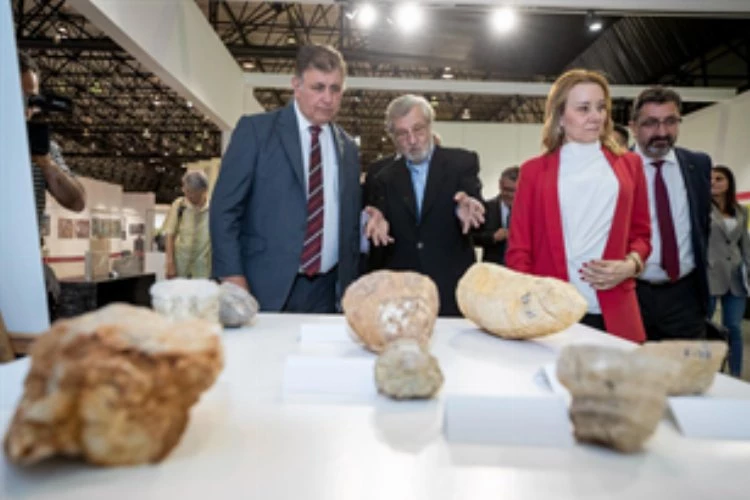 İZMİR (İGFA) - İzmir Büyükşehir Belediyesi ile Türk Mühendis ve Mimar Odaları Birliği (TMMOB) Jeoloji Mühendisleri Odası İzmir Şubesi işbirliğiyle bu yıl ikinci kez düzenlenen Jeoloji Festivali-JEOFEST'24 Kültürpark'ta başladı Açış programında Jeoloji Mühendisleri Odası İzmir Şubesi Başkanı Koray Çetin Önalan, festivale katkılarından ötürü İzmir Büyükşehir Belediye Başkanı Dr. Cemil Tugay’a çekiç hediye etti. İstanbul Üniversitesi Mühendislik Fakültesi'nden Dr. Öğretim Üyesi Yıldırım Güngör, “Türkiye’de Jeokoruma Çalışmaları Işığında Jeolojik Miras Kavramına Bir Bakış' konulu bir sunum yaptı. Konuşmaların ardından Kültürpark Atlas Pavyonu’nda JEOFEST’24 kapsamında Fosil, Gemoloji,  Fotoğraf ve Karikatür sergileri İzmir Büyükşehir Belediye Başkanı Dr. Cemil Tugay'ın katılımıyla açıldı. Taş ve fosil koleksiyoneri aktör Murat Aygen’in Moğolistan’da bulduğu dinozor yumurtası fosili de ilgi çekti.