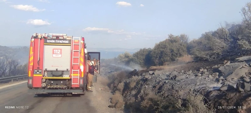 İzmir Büyükşehir Belediyesi İtfaiye Dairesi Başkanlığı ekipleri, bugün öğlen saatlerinde Dikili'nin Çandarlı Mahallesi'nde başlayan orman yangınına müdahale ediyor. İzmir İtfaiyesi’nin 20 araç ve 60 personel ile söndürme çalışmalarını yürüttüğü alanda, İzmir Orman Bölge Müdürlüğü ekipleri de havadan ve karadan alevlere müdahale ediyor. İzmir Orman Bölge Müdürlüğü'ne bağlı 10 uçak, 6 helikopter, 25 arazöz, 9 su ikmal aracı, 3 dozer ve 2 yer ekibinin bulunduğu bölgede, yangının yerleşim yerlerine ulaşmaması için yoğun bir çalışma yürütülüyor. Ekipler, yangının sıçrama riskine karşı kimi bölgeleri önlem amacıyla tahliye etti. İzmir İtfaiyesi de yangının sıçrama riskinin bulunduğu Denizkent Sitesi, 18 Sitesi ve Deniz Efe Sitesi çevresinde gerekli önlemleri aldı.