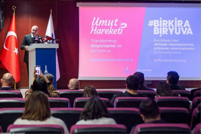 İzmir Büyükşehir Belediyesi’nin deprem sonrası yaptığı yardım çalışmalarından da bahseden Başkan Tunç Soyer, açılan umuthareketi.izmir.bel.tr adresinden bölgeye ulaştırılmak üzere 60 saatte 37 milyon liralık alışveriş yapıldığını, Kültürpark Celal Atik Spor Salonu, Gaziemir Fuar İzmir ve Çankaya'daki APİKAM'ın bahçesinde yardım toplama merkezi oluşturduklarını, bugüne dek 92 tır, 42 kamyon, 3 uçak ve 3 gemi ile toplamda 1 milyon 600 bin 200 parça eşyanın deprem bölgelerine gönderildiğini söyledi. Başkan Soyer, 478 İzmir Büyükşehir Belediyesi personeli ve 185 aracın deprem bölgesinde yardım çalışmalarına destek verdiğini, ayrıca günde 10 bin kişilik yemek üreten mobil mutfağın Hatay EXPO yolu üzerinde vatandaşlara sıcak yemek dağıttığını açıkladı.