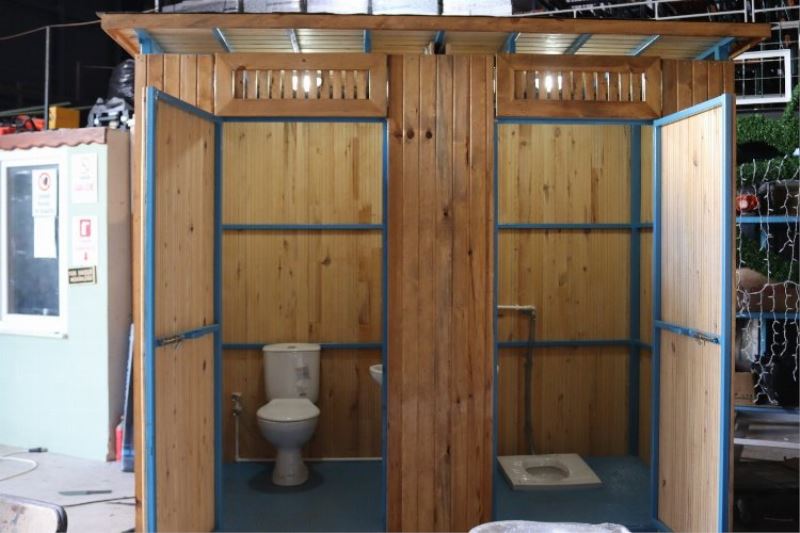 Deprem bölgesi için boş varillerden soba imalatını tamamlayan Park ve Bahçeler Müdürlüğü ekipleri bölgenin en büyük ihtiyaçlarından olan mobil tuvalet çalışmalarına da devam ediyor. Park ve Bahçeler Müdürlüğü, Temizlik İşleri Müdürlüğü ve Fen İşleri Müdürlüğü ekipleri ihtiyaçlar bitene kadar atölyelerinde kendi öz kaynakları ile üretmeye devam edecek.