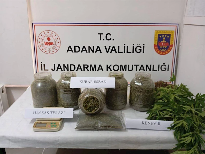 Adana Cumhuriyet Başsavcılığı tarafından uyuşturucu satıcılarına yönelik sürdürülen çalışma kapsamında Adana İl Jandarma Komutanlığı ekiplerince yapılan istihbari çalışmalar sonucu Saimbeyli ilçesinde; bir adreste Uyuşturucu ve Uyarıcı Madde İmal ve Ticareti yapıldığının tespit edildi. Jandarma ekiplerince adreslerde ve araçlarda eş zamanlı olarak düzenlenen operasyonda; 4 kilo 250 gram kubar esrar, 60 kök kenevir bitkisi, 1 adet ruhsatsız av tüfeği, hassas terazi ele geçirildi. Ele geçirilenler muhafaza altına alınırken, 4 şüpheli ise gözaltına alındı. Gözaltına alınan şüpheliler sorgulanmak üzere jandarmaya götürüldü. Olayla ilgili soruşturma sürdürülüyor.