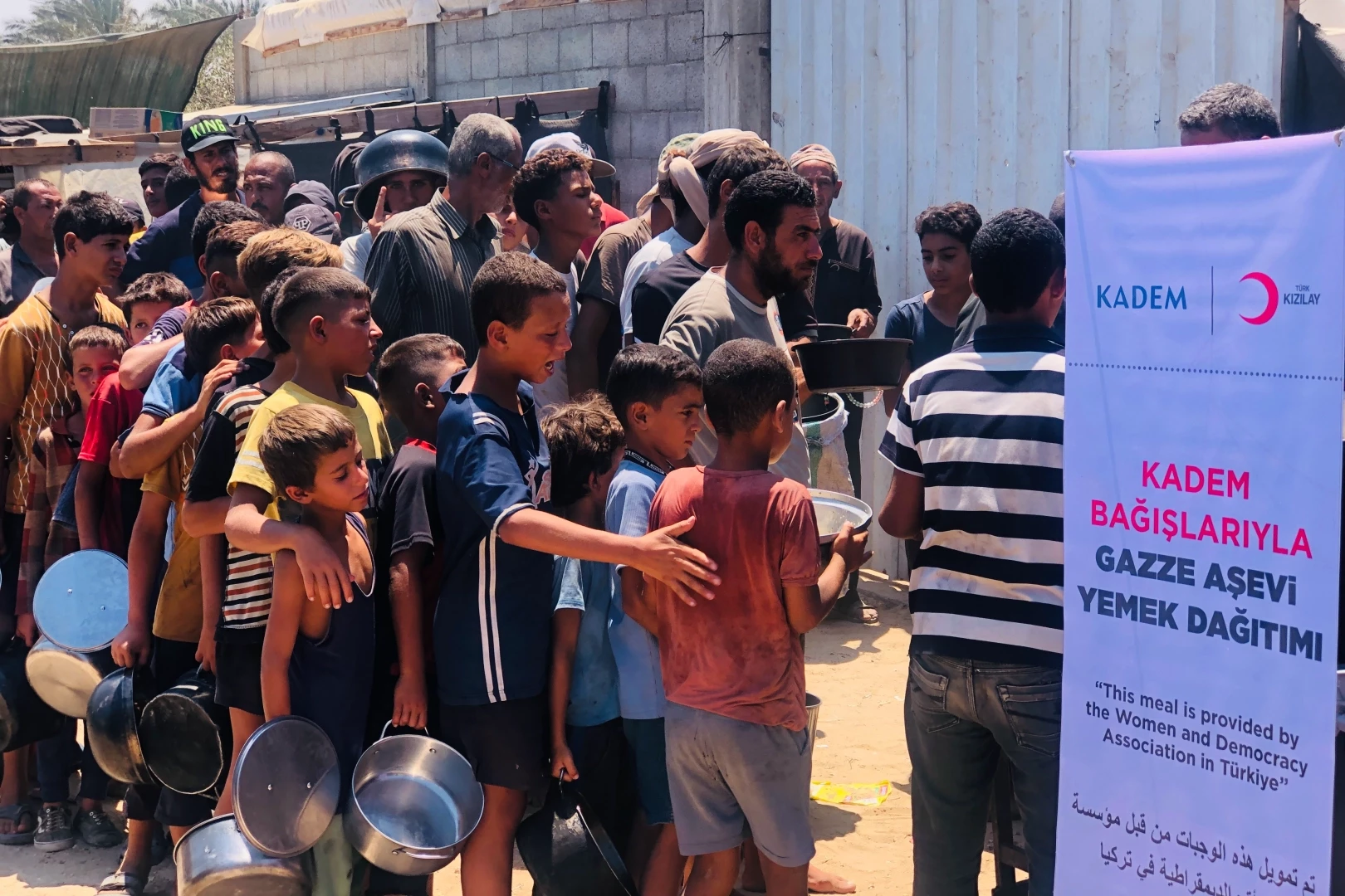 50 binden fazla çocuğun akut yetersiz beslenmeye bağlı sağlık sorunları yaşadığı Gazze’de faaliyetini sürdüren Türk Kızılay aşevine Kadın ve Demokrasi Derneği’nden (KADEM) destek geldi. Kızılay’ın Gazze’deki aşevi için bağışta bulunan KADEM, başta kadın ve çocuklar olmak üzere günde 15 bin kişinin sıcak yemek ihtiyacının karşılanmasına katkı sağlıyor.