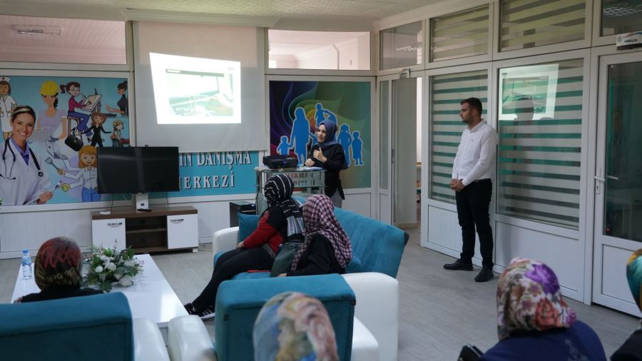 Adıyaman Belediyesi Kadın Danışma Merkezi'nde gerçekleştirilen eğitime konuşmacı olarak katılan Sosyal Hizmet Uzmanı ve Klinik Psikolog tarafından, YEDAM Hizmetleri hakkında bilgilendirme yapılıp, bağımlılık türleri anlatılarak internet ve oyun bağımlılığı eğitimi verildi.