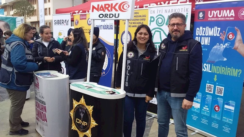 Narkotik Suçlarla Mücadele amaçlı bilgilendirme faaliyeti kapsamında alana stant kuran Ordu İl Emniyet Müdürlüğüne bağlı polis memurları da alana gelen vatandaşlara konuyla ilgili broşür dağıtarak farkındalık çalışması yaptı.