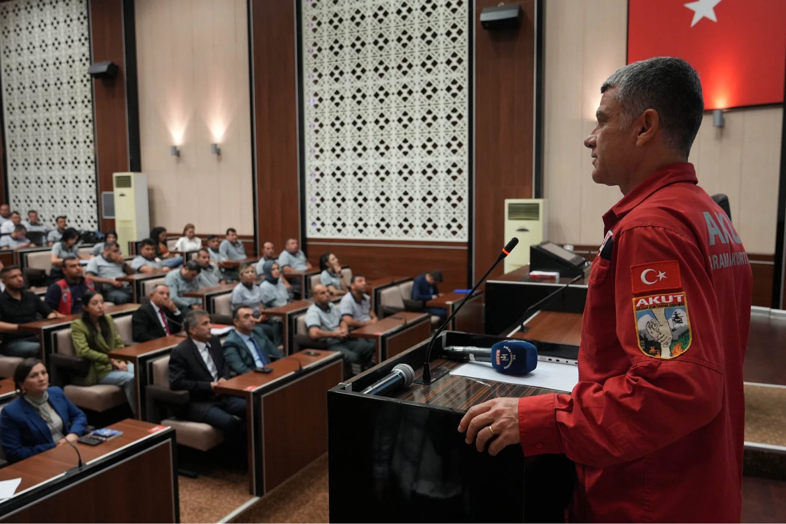 Güvenlik personellerinin mesleki yeterliliğini artırmak, afet ve yangınlara karşı hazırlıklı olmalarını sağlamak amacıyla düzenlenen eğitimde, AKUT Ankara gönüllüsü Ergun Padır afetler öncesi alınacak önlemlerin yanı sıra afet anında doğru müdahale yöntemleri ve acil durum planlaması hakkında katılımcıları bilgilendirdi. Mustafa Kemal Atatürk'ün "Felaket başa gelmeden evvel önleyici ve koruyucu tedbirleri düşünmek lazımdır, geldikten sonra dövünmenin yararı yoktur" sözünü hatırlatan eğitmen, yaşanabilecek olumsuzlukları en aza indirmek amacıyla afetler karşısında tedbir almanın çok önemli olduğunu vurguladı.