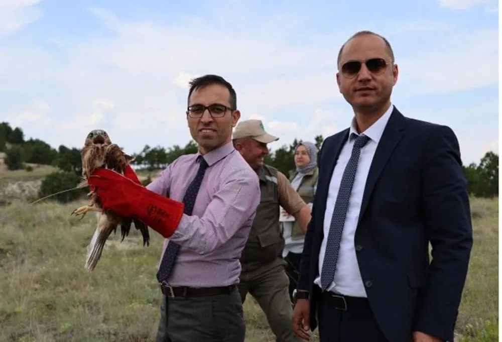 Kızıl Şahin doğa salıverilmesi, Kaymakam Vedat Yılmaz tarafından yapılırken, Doğa Koruma Milli Parklar Beypazarı şefi Ahmet Yurt’ta hazır bulundu.