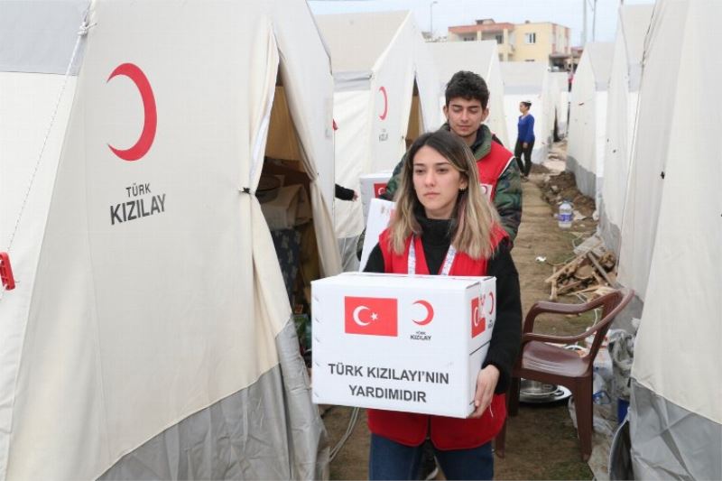 Kızılay, sıcak yemeğin yanı sıra yardım malzemeleriyle de depremzedelerin yanında oluyor.
